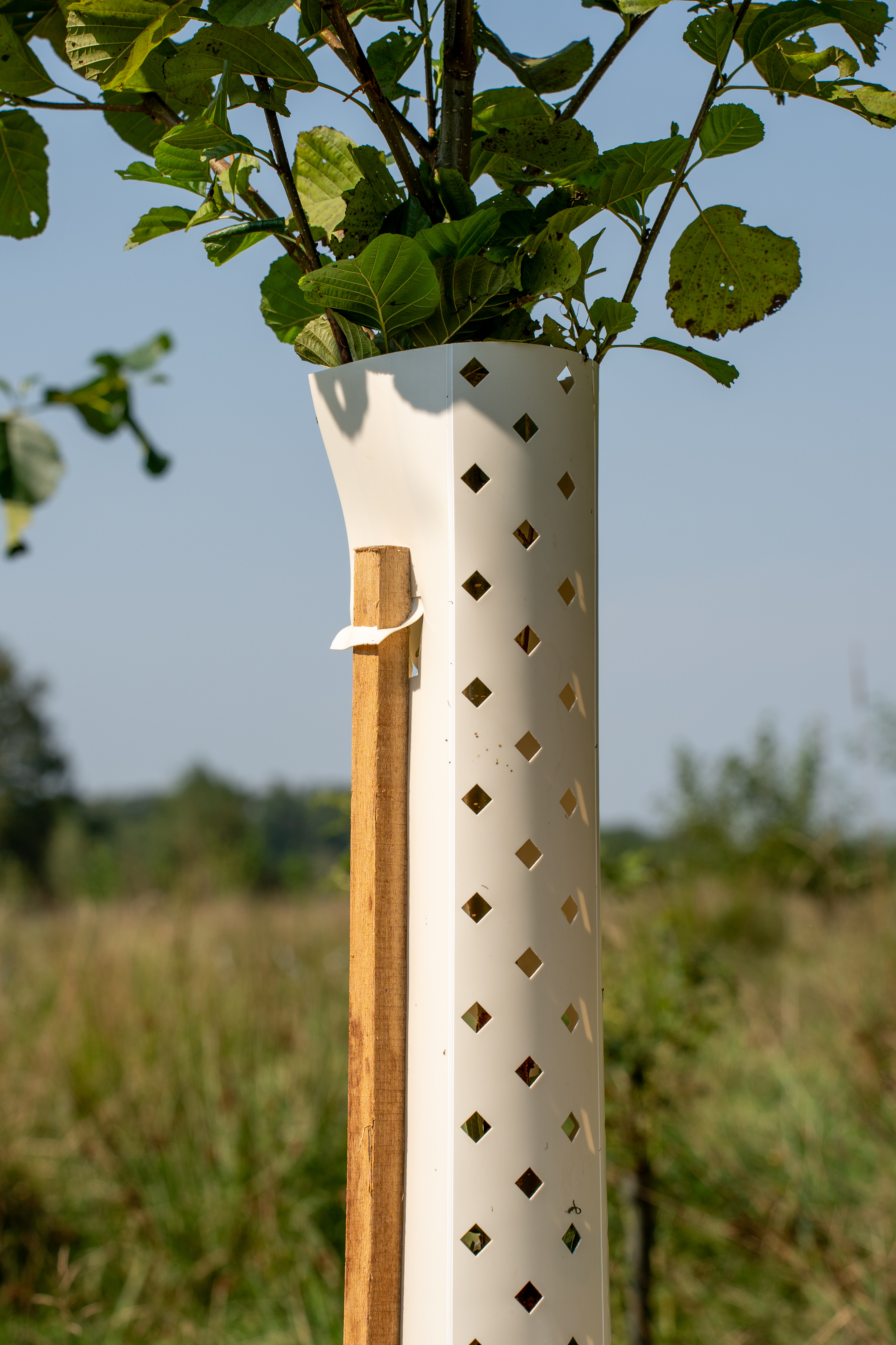 Baumhüllen sind Schutzhüllen, die um junge Bäume gelegt werden, um sie vor Tieren, Witterungseinflüssen und mechanischen Schäden zu schützen. Ein großer Vorteil ist, dass sie das Wachstum fördern, indem sie ein stabiles Umfeld schaffen und gleichzeitig den Baum vor Weidetieren schützen.