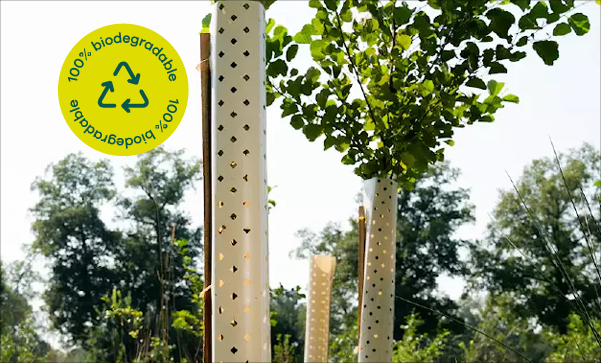 Spiraalvormige boomstambeschermers beschermen bomen tegen wild, knaagdieren, chemicaliën en zonlicht en zorgen daarmee voor een veilig groeiproces.